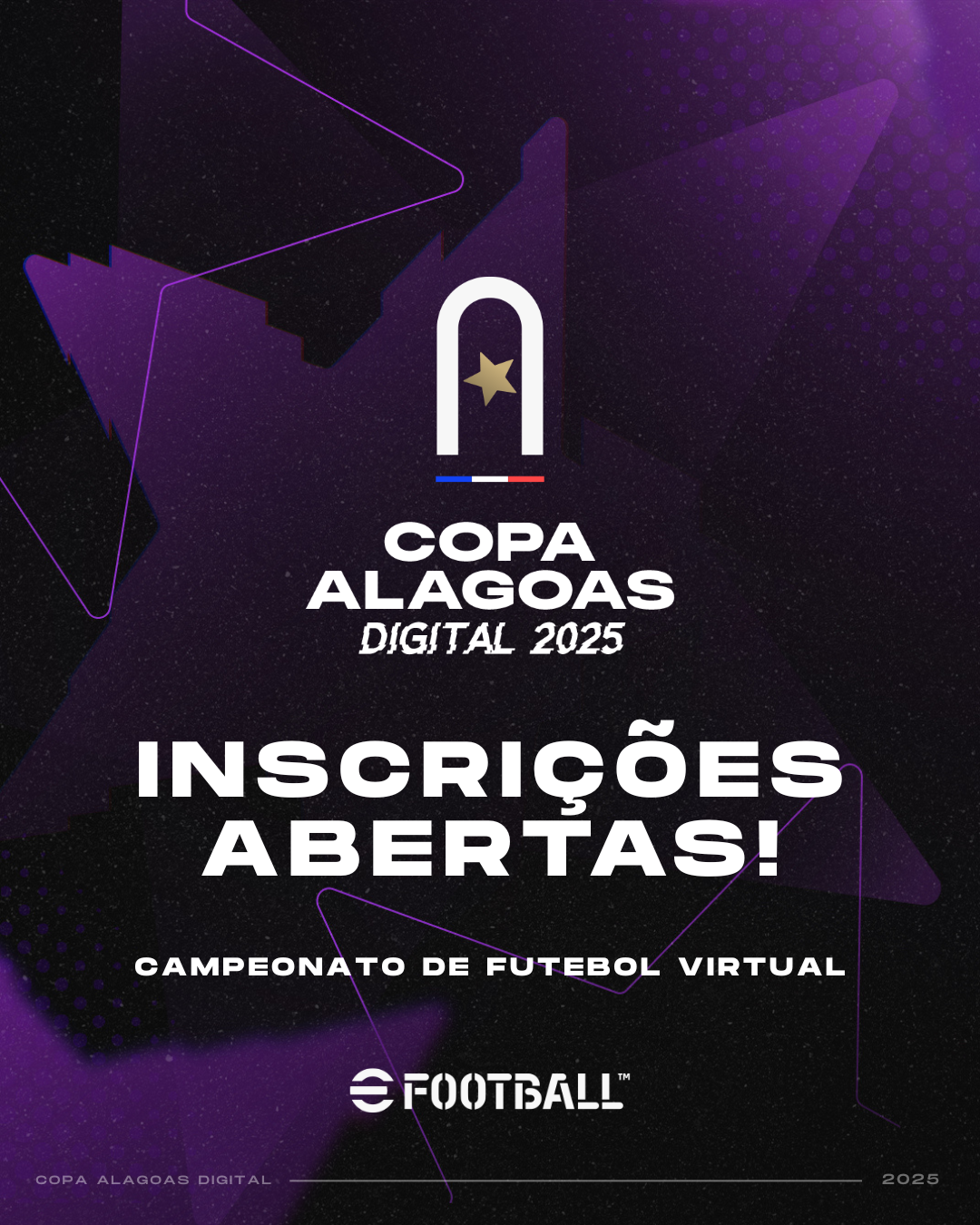 VAGAS ESCORRENDO PELOS DEDOS! Garanta SEU lugar no maior torneio de futebol virtual de Alagoas - patrocínio oficial da FAF e premiação BOMBÁSTICA! E aí, gamer alagoano (ou não)? A Copa Alagoas Digital 2025 está com inscrições abertas e essa é sua oportunidade