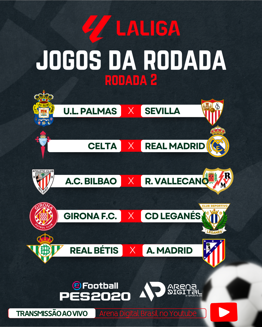 E aí, galera gamer e fã de futebol! A Arena Digital Brasil tá fazendo história mais uma vez, e você não pode ficar de fora! Hoje, a IA está no comando, simulando DUAS RODADAS COMPLETAS DA LALIGA ao vivo! Isso mesmo, a inteligência artificial tá revolucionando