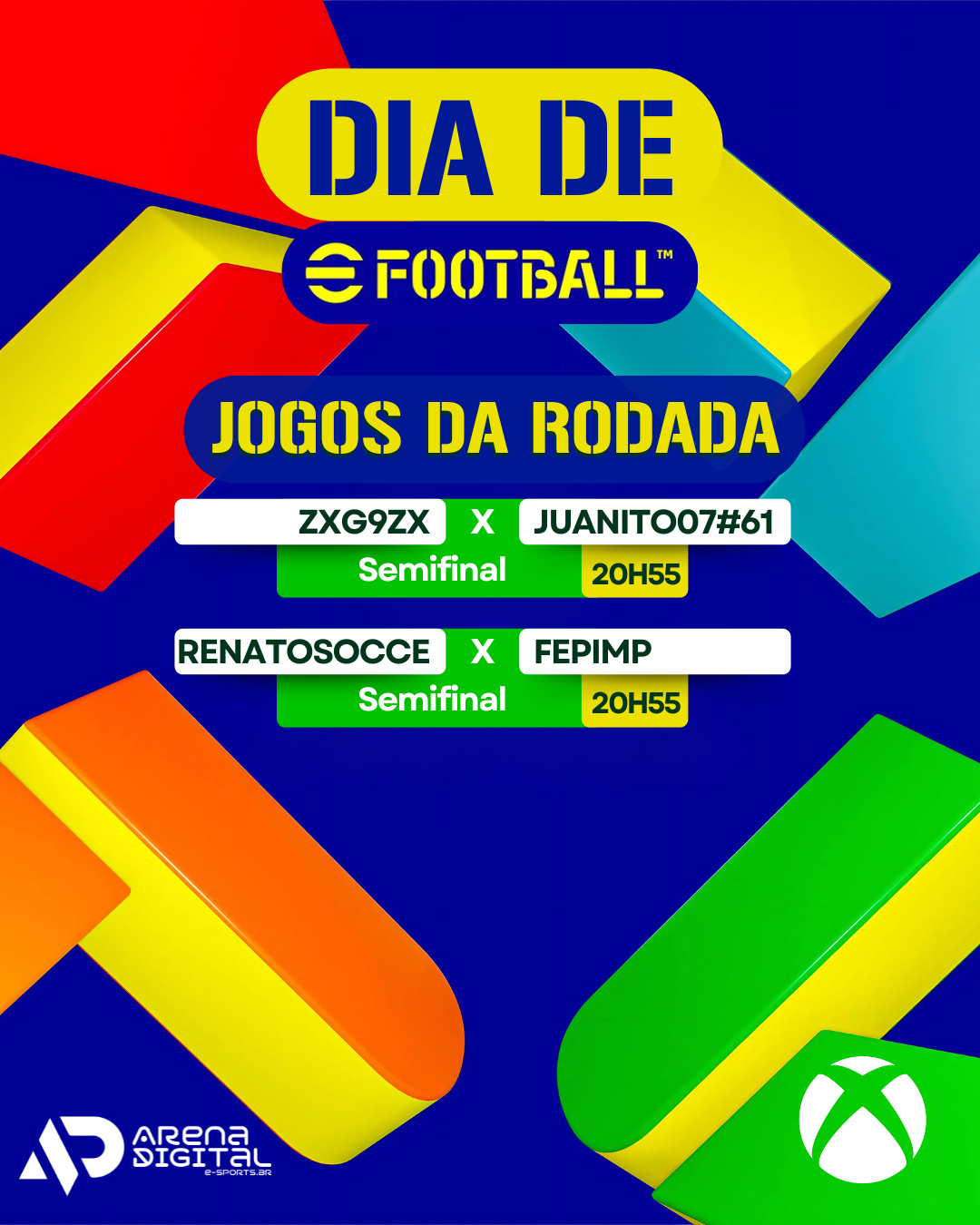 QUEM VAI DOMINAR OS GRAMADOS VIRTUAIS HOJE? Fala, lendas do controle! Hoje é dia de decisão no Dia de eFootball – Xbox X1 Autêntico, e os confrontos prometem ser de alto nível! Os melhores players da nossa comunidade vão entrar em