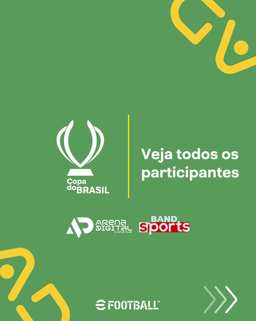 Fala, comunidade que respira futebol virtual! A Arena Digital Brasil está prestes a escrever o capítulo mais importante da história dos esports nacionais, e o melhor: você vai ter um assento na primeira fila! A Copa do Brasil de Futebol Digital vai ganhar um palco que todo jogador sonha: transmissão AO VIVO no YouTube da @BANDSPORTS! Isso mesmo, a Band, um dos maiores canais de esporte do país, vai mostrar para o Brasil inteiro o nível absurdo do nosso futebol virtual. E os quatro classificados que vão entrar para a história acabaram de ser definidos! 🔥
